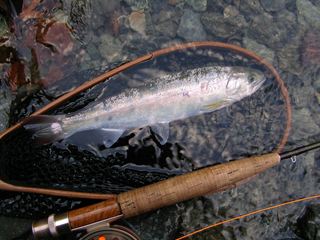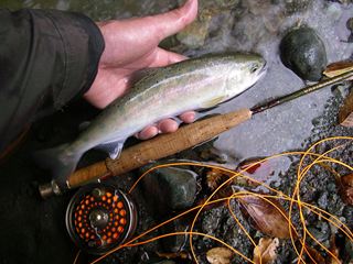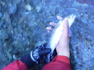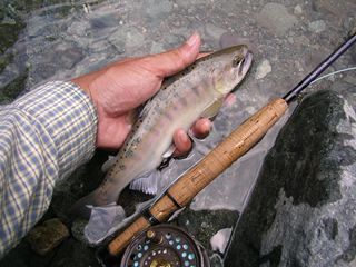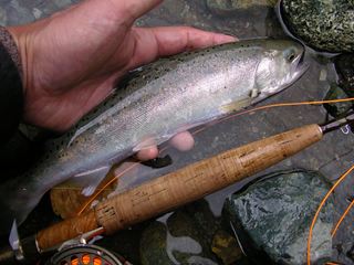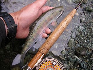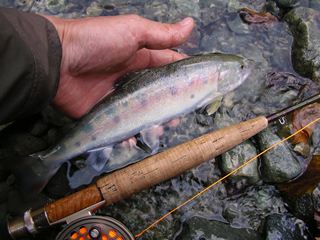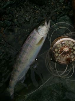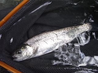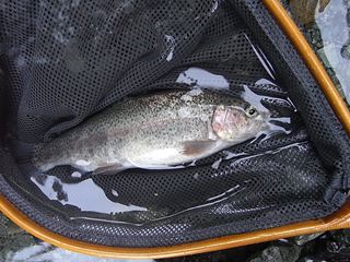 れほどつめたい雨ではなく、魚は高活性で高成果。特に、レインボーの機敏さは際立っていて、異なるポイントで同