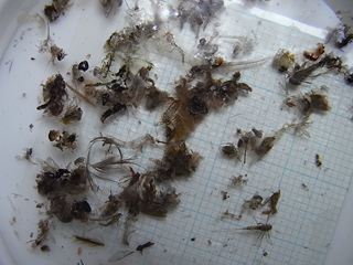 虫の成虫は、このシロハラコカゲロウ(体長:7~10㎜,淡グレー~半透明のボディ)が多く、その他はガガ