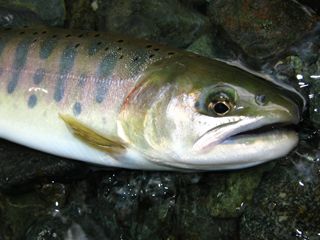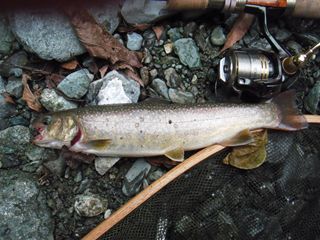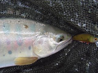 浮くタイプは特に優秀)で成果、どれもこれも引き応えが強い数釣りに。また、本日はイワナも活性良好で成果あり。一方、年越しヤマメは捕食物の選り好みが