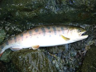 ブルック/テンカラ#10 】 アングラー・撮影 横浜市 伊東さま ←拡大 ←拡大情報のご提供とお写真の掲載にご協力をいただきまして誠にありがとうございます。 |