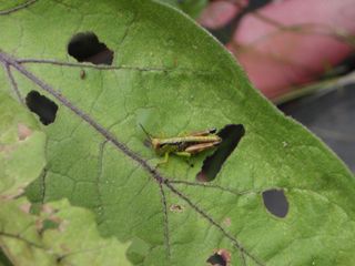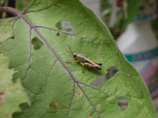 25~30㎜位)が歩いていたり、葉を食んでいる姿をよく見ました。その他、忙しく食事中のバッタや甲虫類(テントウムシ等)、大きめのアリ(~20㎜)