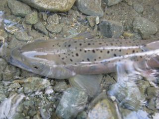 エリア内には大型イワナやブラウン以外にも、早々に婚姻色をほのめかしだした尺上ヤマメもおります。2年物は、秋には産卵して落ちる見込みです。徐々に体