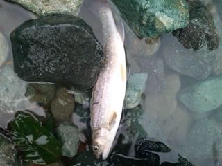 高が出て背中が盛り上がり、顔つきが変わり始めるとみるみる強面に。成長過程もお楽しみください。本日の雨では、増水や濁り等の変化はありません。 |