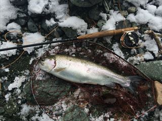 | <2015年1月10日> 年越しヤマメ ・ 大レインボー 横浜市 徳井さま ヤマメ : ドライ #26 ミッジ 40㎝オーバーのレインボー : #18 ソフトハックル 情報のご提供とお写真の掲載にご協力いただきまして誠にありがとうございます。 |