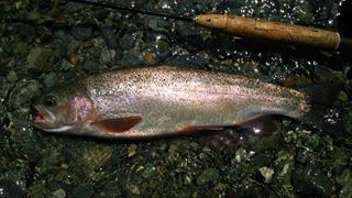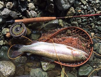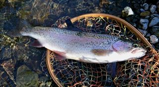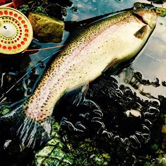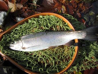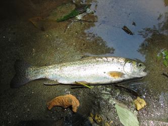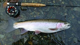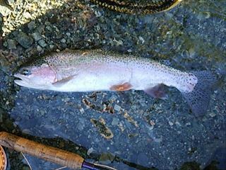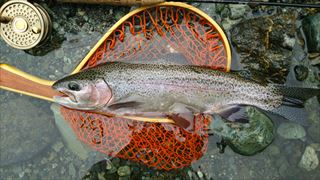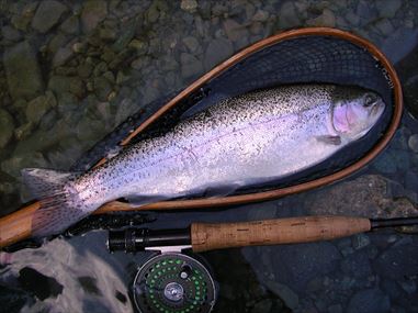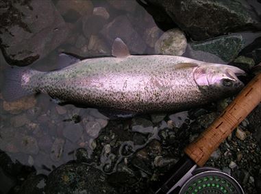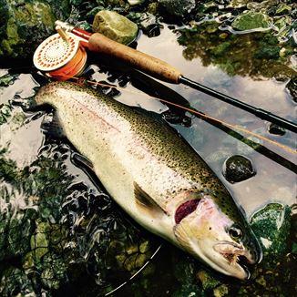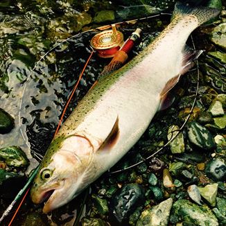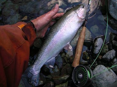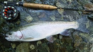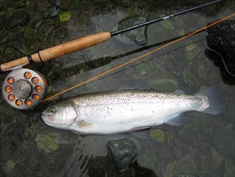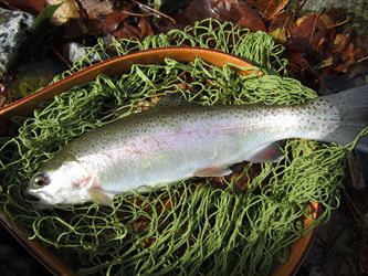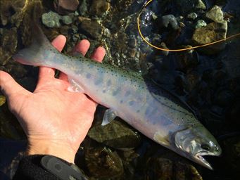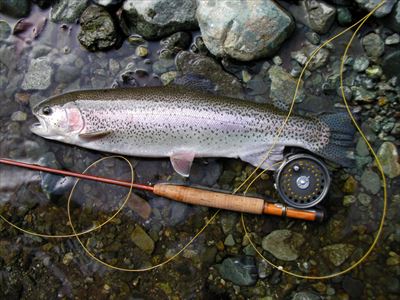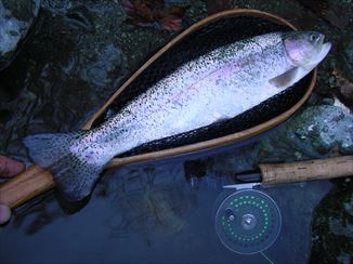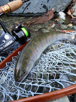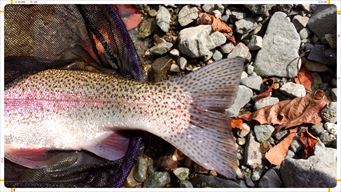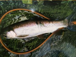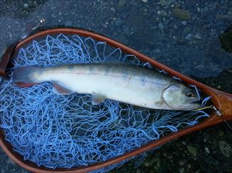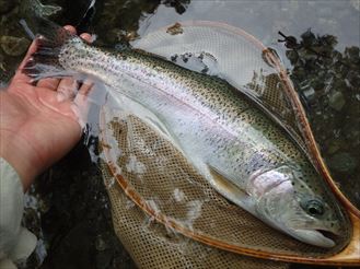 | <2015年10月23日> 小田原市 吉田さま 大型レインボー ハッチが少ない状況下では、早瀬の芯に小さめのニンフをショットで沈めて成果。 *お写真は、数釣りされた(約30尾の)レインボーの中の1尾です。 情報のご提供とお写真の掲載にご協力いただきまして誠にありがとうございます。 |