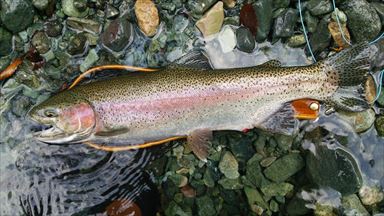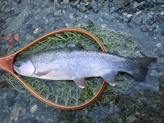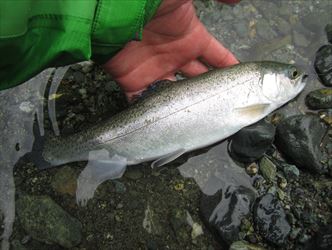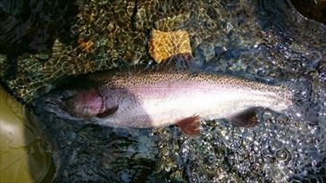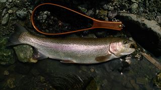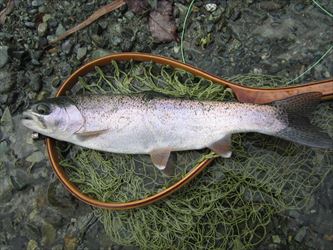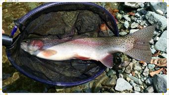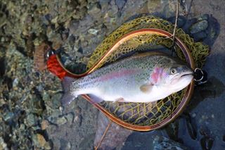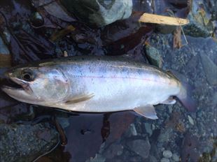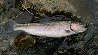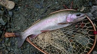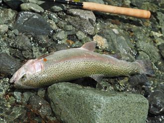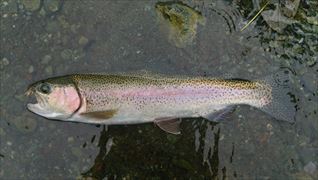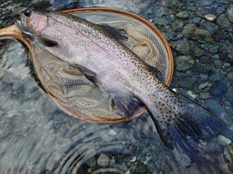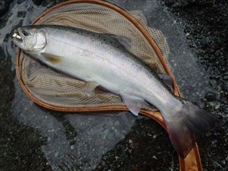 | <2015年5月9日> 大レインボー 49㎝/ ガンガン瀬下のプール 横浜市 伊藤さま 拡大 情報のご提供とお写真の掲載にご協力いただきまして誠にありがとうございます。 |