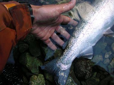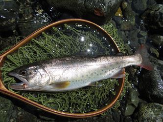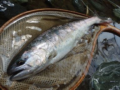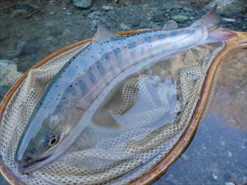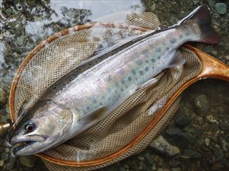 魚は、ヤマメ・レインボー・イワナ・サクラマス等、居着きの魚を守り