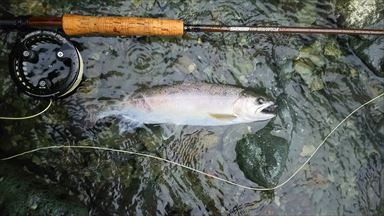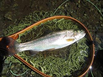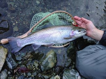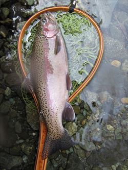 | 大型レインボー/#12ニンフ・#20フローティングニンフ ヤマメ/#26 ミッジドライ 横浜市 徳井さま 情報のご提供とお写真の掲載にご協力いただきまして誠にありがとうございます。 |