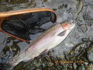 | <2015年8月12日> 大型レインボー ・ 尺ヤマメ 横浜市 Y・Mさま と ご友人さま