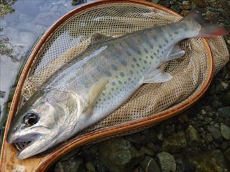 | <2015年4月6日> イワナ33㎝ / ルアー:ミノー系 横浜市 伊藤さま 拡大情報のご提供とお写真の掲載にご協力いただきまして誠にありがとうございます。 |