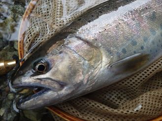 | 今朝は、霜や霧が見られる冷え込み(-1℃)でしたが、晴れて、昼間は10℃以上まで上昇。昼頃まで風があり、なかなかハッチが見られませんでしたが、昼過ぎには、ユスリカなどの小さい双翅類や、コカゲロウが飛んでいる姿を一時的に見ることも。今日のところは、まだハッチが充実してはいませんでしたが、各魚種がそれぞれに活気を見せる状況があり、釣り分けができたとのお声。レインボーは、川底付近にいる状態が多かったが、深場や瀬など、比較的どこでも、タナ合わせで成果可能で、40cmクラスの大型に成功されケースも。レインボーの場合は、ルアーは瀬が好調。フライは、ニンフ系の大きめサイズ(#12)が有効。反応が少なくなった時は、サイズを次々にチェンジして(~#20)数釣りと伺う。また、サクラマスは上層付近で目立ち、ソフトハックル系は特に有効。ルアーで成果の方も。年越しヤマメは、瞬間的に浮上したり、集団で着くポイントが明確になってきた傾向で、成果チャンス増。ただ、イワナに関しては、本日のところは活性が低く、姿を見せないものが多。唯一、現れた大型イワナは、目の前で上流にのぼって行ってしまったとのお声も。今日の魚は、魚種によってそれぞれですが、縄張り争いをしたり、活発な動きを見せる場面もあり。水生昆虫は、少しずつ成長過程が進んでいる様子が感じられ、ドライの釣りが充実するのは、もう間もなくの兆候も。水量は少なめで安定。ニーブーツで渡渉できます。 *最新のお写真を上欄「おきゃくさまフォト」でご紹介しています。ご覧ください。 |