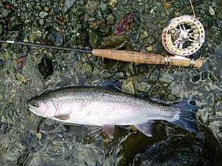 | 天気は曇り~晴れ時々曇り。晴れたのは、午前10時頃~昼過ぎ。昼頃からは、ひんやりした風が時々。今朝も、平均的な朝で気温は3℃(水温10℃)。午前中は、なかなか太陽が照らないが、風もなく、寒く感じる陽気ではなし。午前9時頃になると、気温が上昇してきて、開きに流心が注いでできる巻き返しでは、年越ししたばかりのヤマメが、ぐるぐると泳ぎ回って、捕食物をさがしている様子。午前10時に晴れてくると、単体のカゲロウ(スピナー・中型・薄茶~ベージュ系)やユスリカ、ブユの大群などが現れるようになり、昼過ぎまでは、陽射しに恵まれて暖かく、気温は15℃、水温は12℃強まで上昇。昼頃は、開きの流心の中央を陣取る、良型レインボーが、流れ出し辺りで、顔を出してパックンパックンと食べている姿も。また、浅い早瀬では、低めの態勢で上流へさしていくものも。しかし、ライズの態勢がとれる場所なり状況では、活動的な様子でしたが、昼頃からは、風も出てきて、強くはないが、ややひんやりとするようになり、午後に再び曇ると、群れのハッチはいなくなり、小型のカゲロウや、トビケラなどがパラパラと飛んでいました。本日のところは、フライは、開きやプール状になったスペースなど、流下物を構えて待てる場所でのみ、成果チャンス。ライズの年越しヤマメは、ミッジドライ(カゲロウモデル)で成果と伺う。しかし、落ち込みでは深く沈んでしまっていて、レインボーが低活性。ルアーに誘われ出ても、咥えるまでの活気がなかったり、バレてしまったりとのお声。冬は、レインボーの活性が、高まるかどうかが、特に釣果には重要なようです。 |