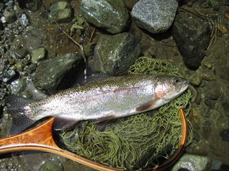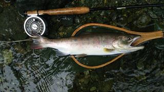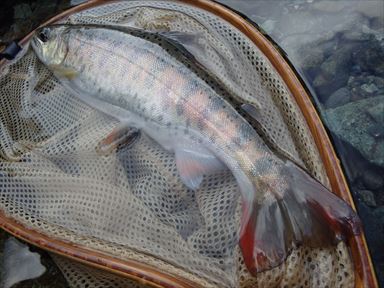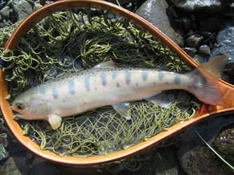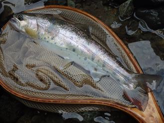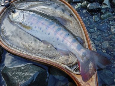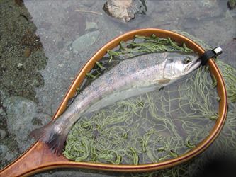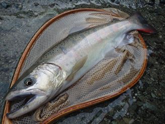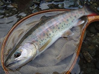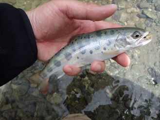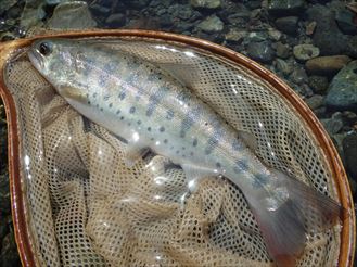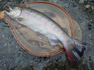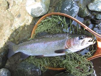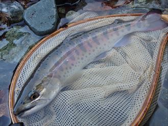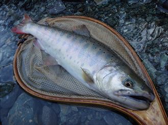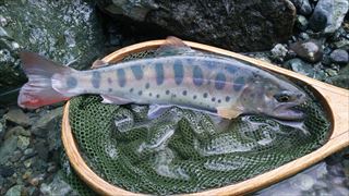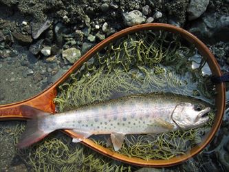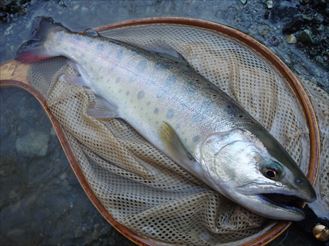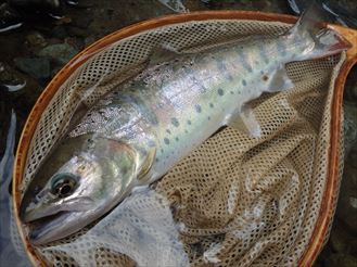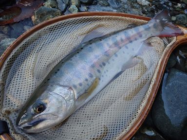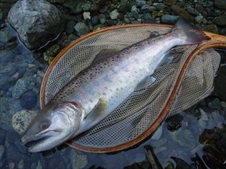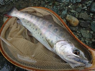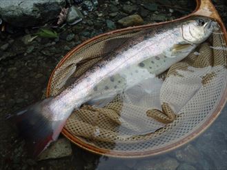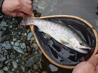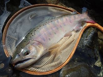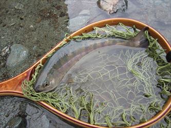 魚は、ヤマメ・レインボー・イワナ・サクラマス等、居着きの魚を守り