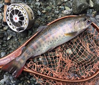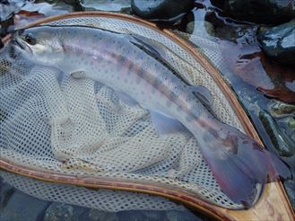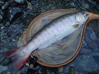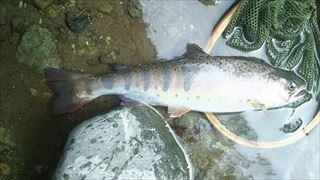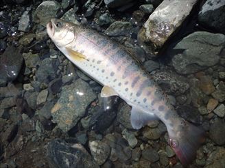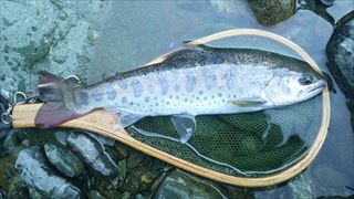 毎年、5月より入渓してきた育成ヤマメは、順番に年越ししています。 春より、日々免疫力を高めつつ、成長してきており 最も若いものでも、春には20㎝以上になり、エリア内の各所にいます。 2年・3年のものは、尺以上になっています。 いつも、やさしく接していただきまして、ありがとうございます。 おかげさまで、渓流ヤマメらしい成魚になり、活動しています。 2017年 5月は、サクラマスが入渓しています。 今後の成長を見守っていただけますよう、お願い申し上げます。 |
