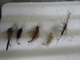 | 天気は晴れのち曇り(時々晴れ)。風は少々。昨晩(~明け方)は、雨が降るも、今朝の渓流には影響はなく、増水や濁りはありませんでした。また、雨の翌朝で気温は高め。午前7時前から10℃あり、午前10時前に15℃。水温は、朝13℃。午前中に14℃。昼間は暖かかったけれど、曇りがちで、気温・水温はそのまま(気温15℃・水温14℃)でした。(気温が一定だったわりに)一日中暖かかった本日は、ハッチにも変化あり。今日は、午前9時頃から、ブユの大群が活発で、水面のスレスレを忙しなく飛び回ったり、小型のカゲロウ(ダン)が次第に増え、11時には、カゲロウのスピナーの集団も登場。また、昼に飛んでいたカワゲラは、13~15㎜の中型も数匹。捕食対象が多く、ブユなどは、水面付近で活動していたこともあり、今日の魚は、飛んでいる虫に注目。特にヤマメは、午前10時頃には、早瀬の浅場(の流れが緩むスペース)に数尾が着いていて、水面に浮上してパクパク。昼になると、レインボーも浅い流れに着くようになり、平瀬では、レインボーもブユに反応。本日のところは、浅い流れと深場では、魚の動きや反応、成果に大きな違いあり。浅場の魚は、大半がブユやカゲロウに意識が集中していて、成果はドライ#22~23 ブユパターン~スペント等で、ライズのヤマメや、その場に居着く良型レインボーなど。一方、流れ込みの深場では、巻きのポイントの魚は、中層~やや上でウロウロして、流れてくるらしい何かを探しているのか?沈む毛鉤は、なかなかキャッチしようとしない様子。あるいは、最下流域などの落差のある、豪快な流れ込みの深場では、表層めがけて、見えない所から、何度か上がってくるが、タイミングが合わないことが多。一見、雨の前と何も変わっていないように思うのですが、水量が変わってないわりに、流水が重く(水圧が強まって)感じられことに気づき、流れ込み付近をよく見ていると、白泡の様子に違いが。水が落ちてきた後、白泡は真下に潜り込んでいくような状態で、あまり横に広がっていない印象。見た目以上に、流れの勢いが、(降雨によって)強まっていたのかも知れません。現在の水量は、ニーブーツで渡渉するには、まだご不便する箇所が多いですが、流れが穏やかになれば、渡渉できるようになると思われます。 |