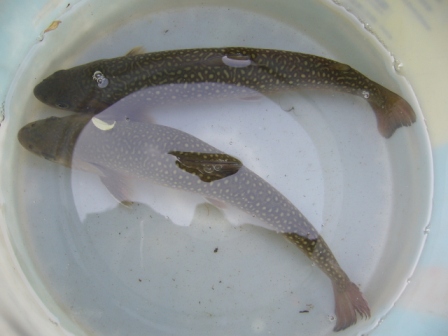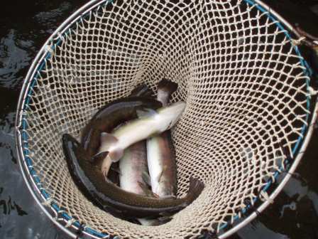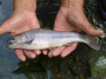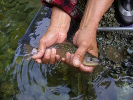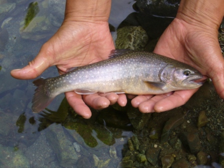大)→ <イワナ> No1 No2 No3 ![]() No4 No5 当エリアに放し管理している魚はいずれも、寄養魚組合施設内にて同水系渓流の水で稚魚から育った魚たちです。 |