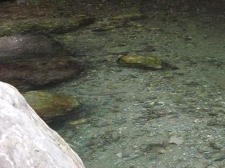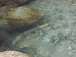も(銀化の)サクラマスは際立って目立ち、(流心の沈み石と石の間などを)ビュンと音がしそうな速さで移動していました。午前中はなかなか陽が射さず日向