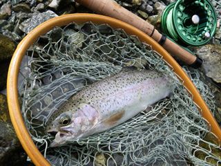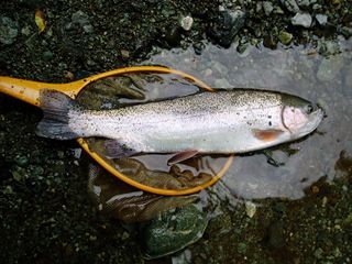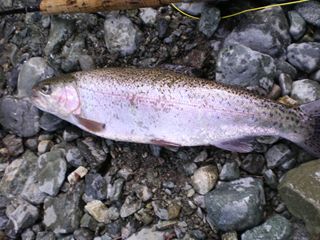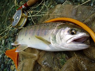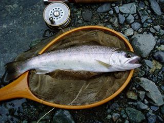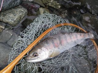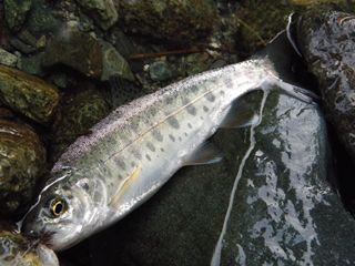 イマス・イワナ・ヤマメ・サクラマス・・・。各魚種によって、水温等、流水条件に得意不得意があるようですが、レインボーは育ちざかりも大型も、比較的時