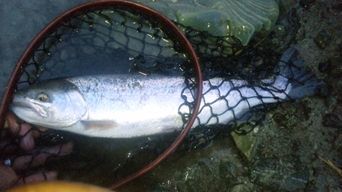 【雨の中のサクラマス】