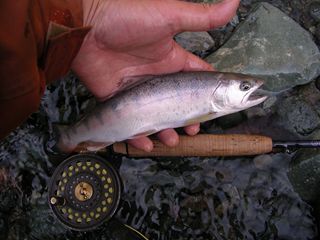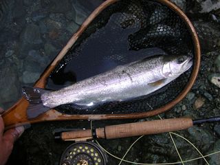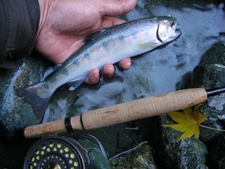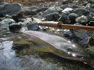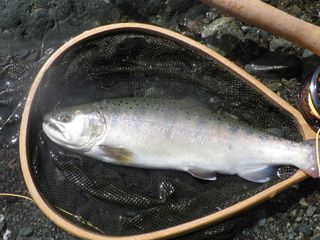 も)外気がつめたいという極端さ。肌寒い場所も風がなかったのが幸いで魚は高活性。昼間はドライも#16~有効。レインボー、ホウライマスは、ポイントや