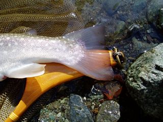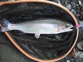 ワナ、ブラウンは定位場所を決めている傾向。レインボーはかかってからもなかなか寄らず。いずれの魚種もコンディション良好。いよいよ本シーズンの動きを