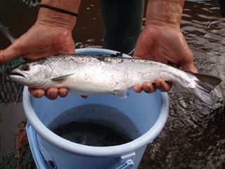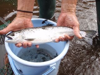 でも、ヤマメ種は反応が早く機敏で、特にサクラマス系は力強い咥え込み方をするとか。その他ホウライマスも素早く、ブルックも運動量が増えてきた様子。イ