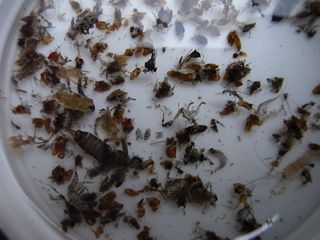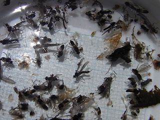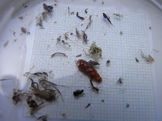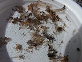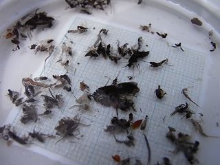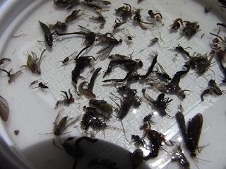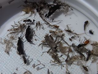 成果の様子。本日のハッチは、華奢なつくりのカワゲラ(10~12㎜・黒)やトビケラ(12~15㎜以内・茶系)などが、最も多く見られていたようでし