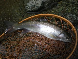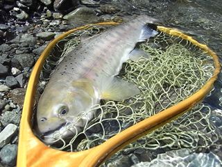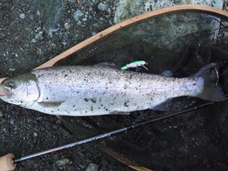 成功したのは、大型レインボー、サクラマス、ヤマメ等と伺う。今回の降雨では、流れは一時的に荒れましたが、魚へのダメージはない様子です。~お越しいた