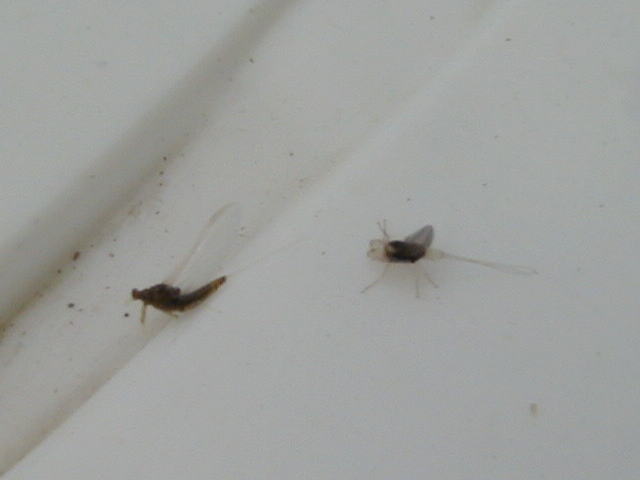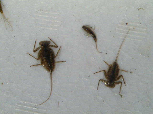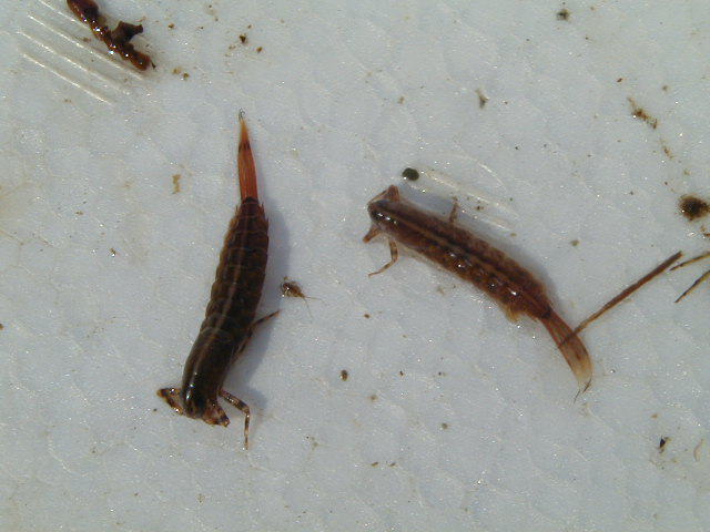 ヒラタカゲロウ科(左)とシロハラコカゲロウ(右)
